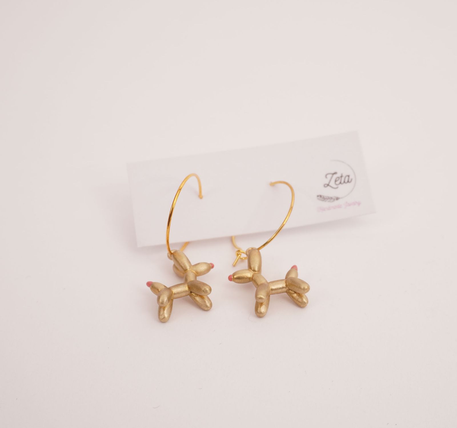 Σκουλαρίκια κρεμαστά "BUBBLE DOG" σε ροδακινί χρώμα.