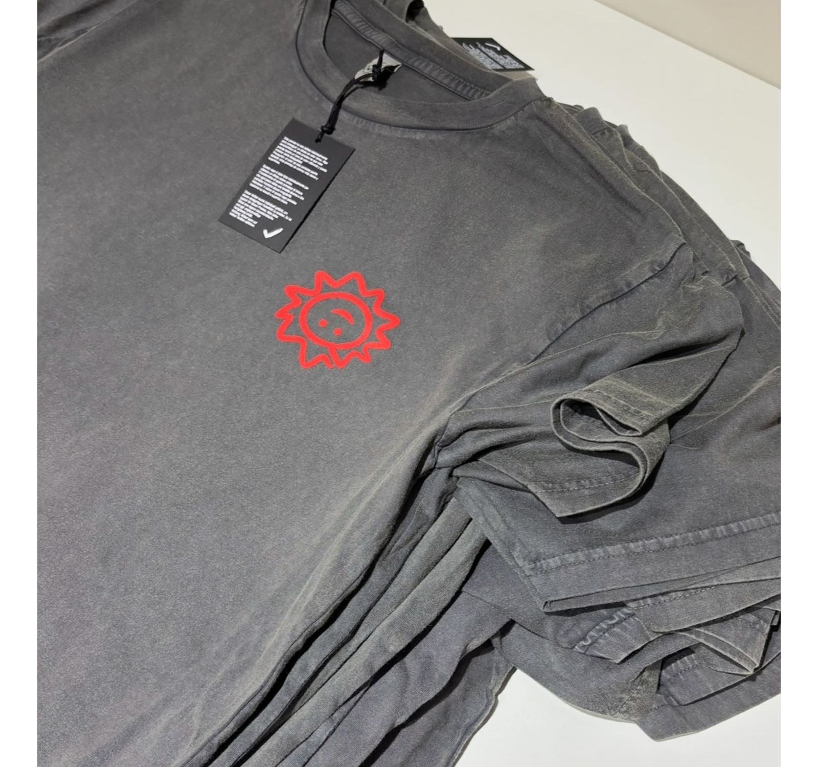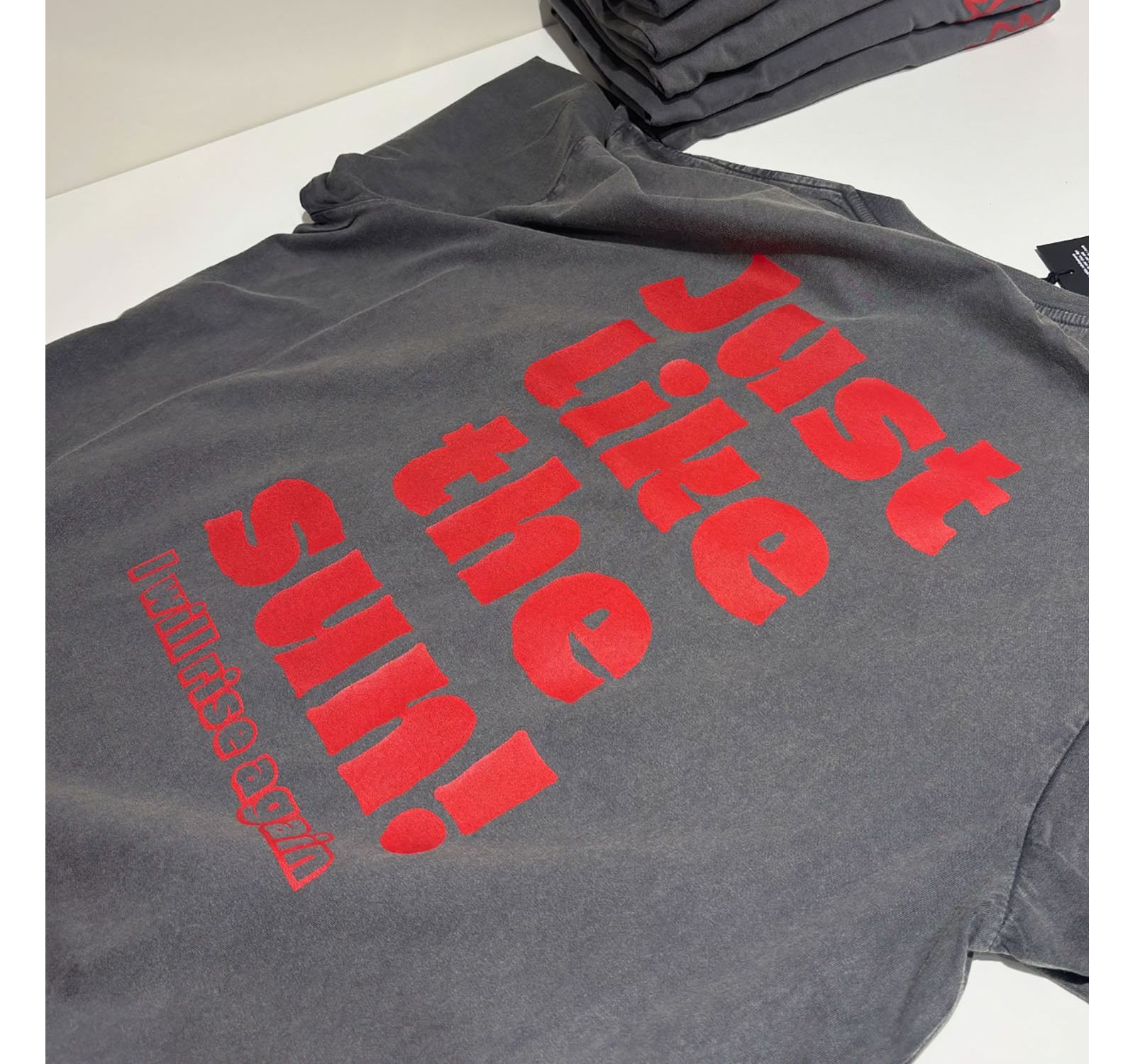 Στην πλάτη είναι τυπωμένο με μεταξοτυπία το μήνυμα “just like the sun i will rise again” σε κόκκινο χρώμα, πάνω σε stonewashed grey βάση.
